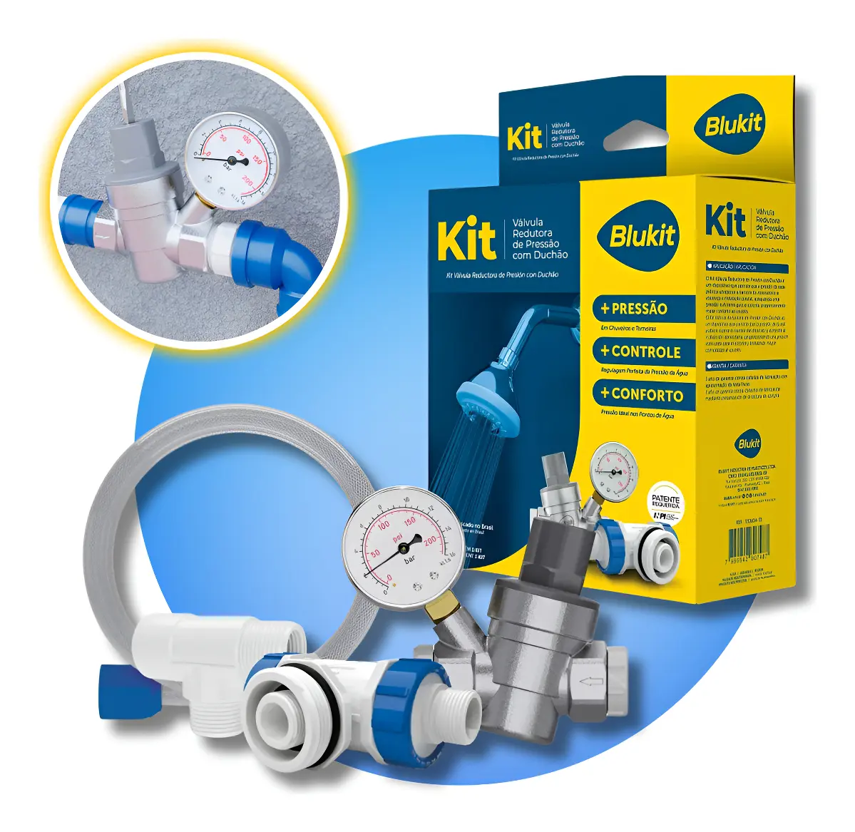 KIT VALVULA REDUTORA DE PRESSAO COM DUCHAO BLUKIT